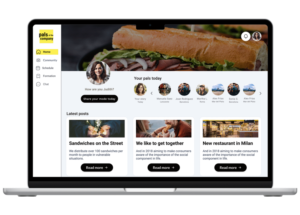 El reto consistía en crear un espacio donde los empleados pudieran conectarse, compartir conocimientos y experiencias, y acceder de forma sencilla a información relevante para su trabajo diario así como a su calendario de turnos. Para ello, diseñé una comunidad en línea que integra elementos sociales y profesionales, permitiendo tanto la interacción informal entre compañeros como el intercambio de recursos y herramientas laborales.